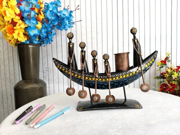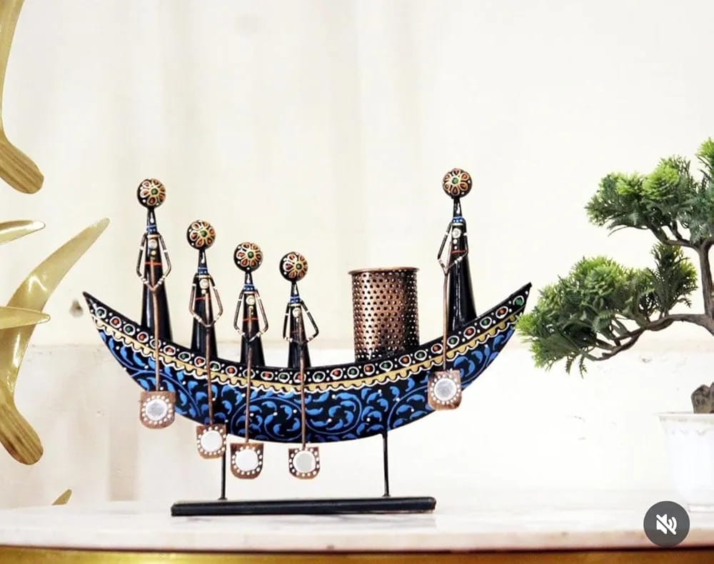 *Decorative handicraft, often a Metal Tribal Boat Showpiece or Ethnic Boat Pen Stand.