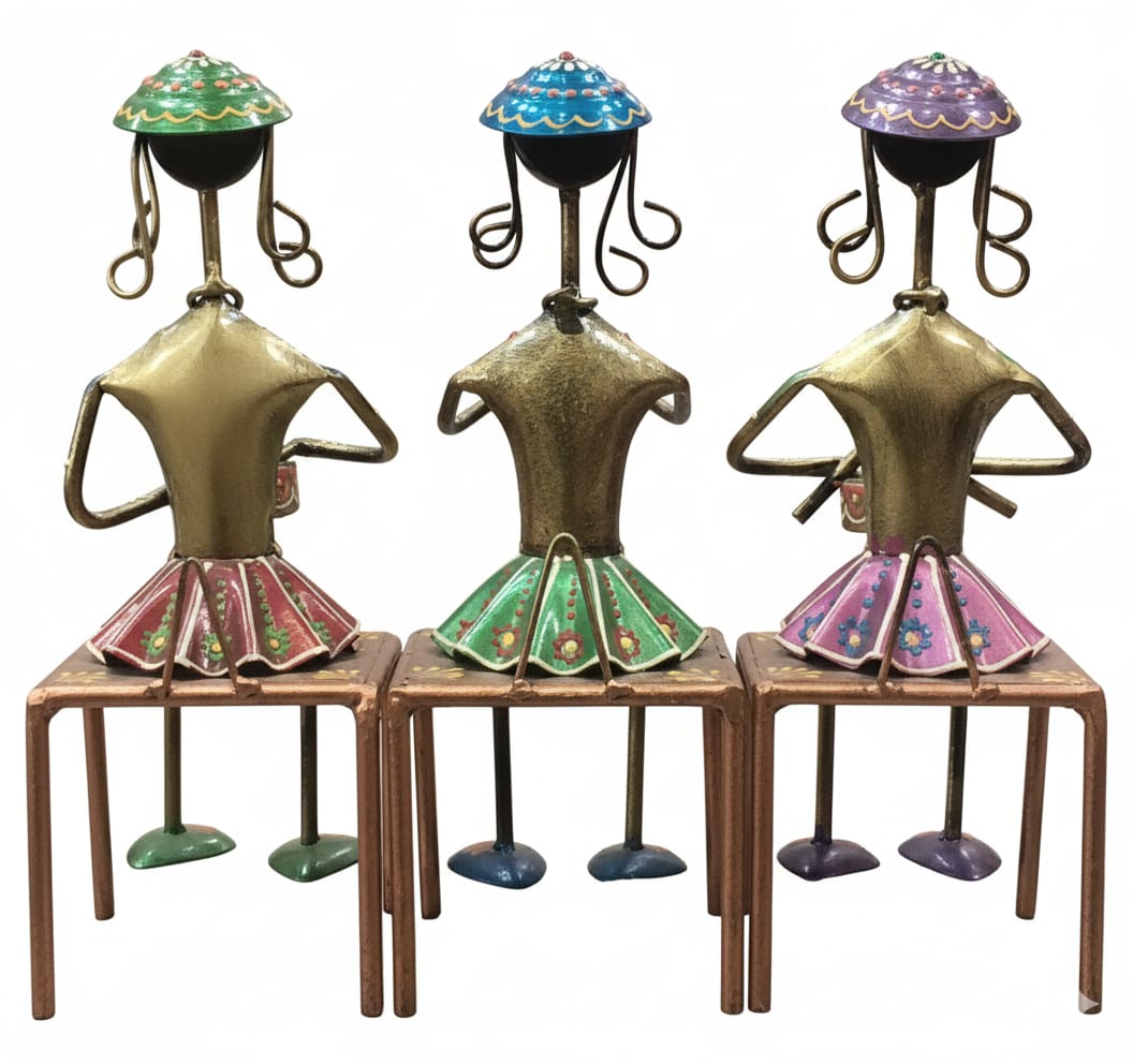 Description:- Material: The figures appear to be made of metal, possibly brass or a mix of metals, with colorful enamel or paint.