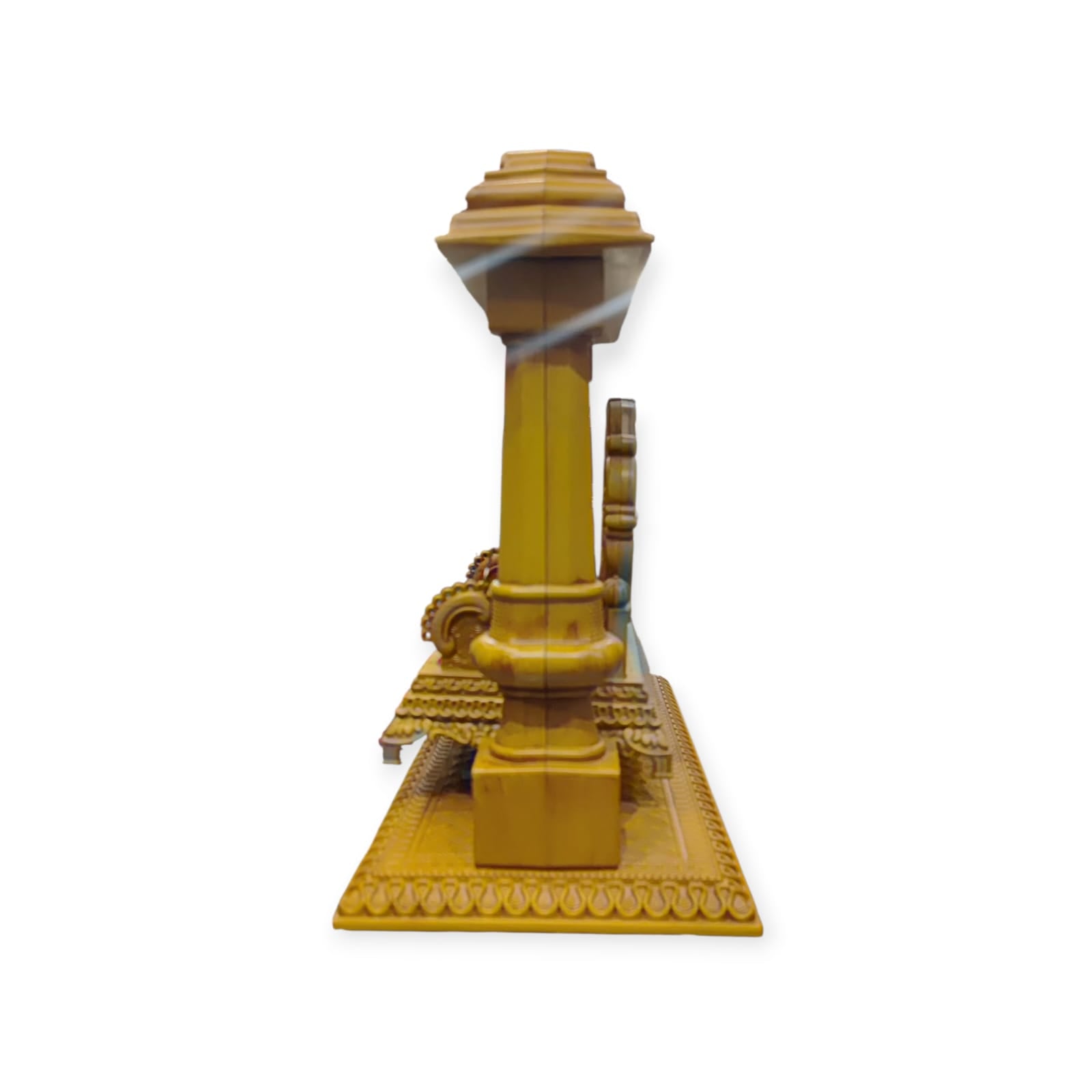 Pillars: The main support pillars on the sides are shaped like classical columns, also featuring detailed carving and a polished finish.