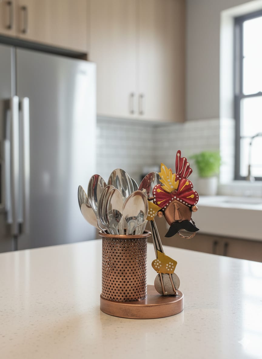 Figurine Theme: A decorative Indian-themed figure attached to the side.
