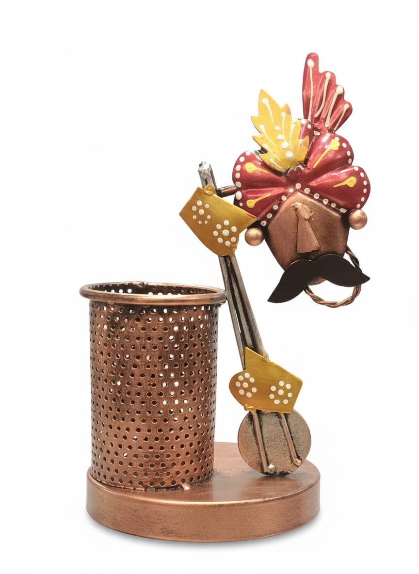 Description:- That's a charming metal pen holder or desk organizer.